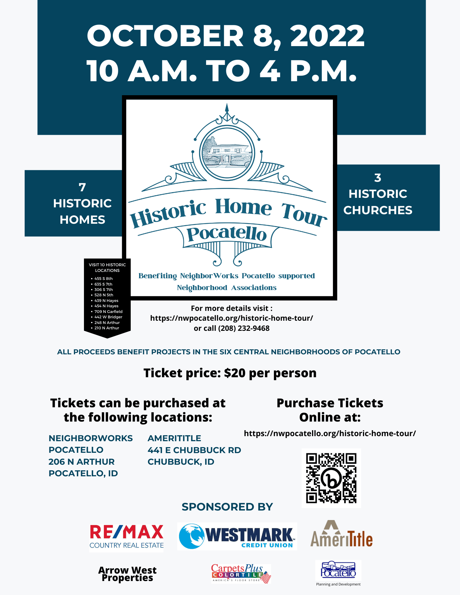 On October 8, 2022 from 10 a.m. to 4 p.m. attendees will have the opportunity to visit 10 historic homes and churches in Pocatello (see listing below). The choice is yours on how you visit these homes. You can catch a ride on the trolley (map coming soon showing trolley stops) or you can drive to these locations yourself.