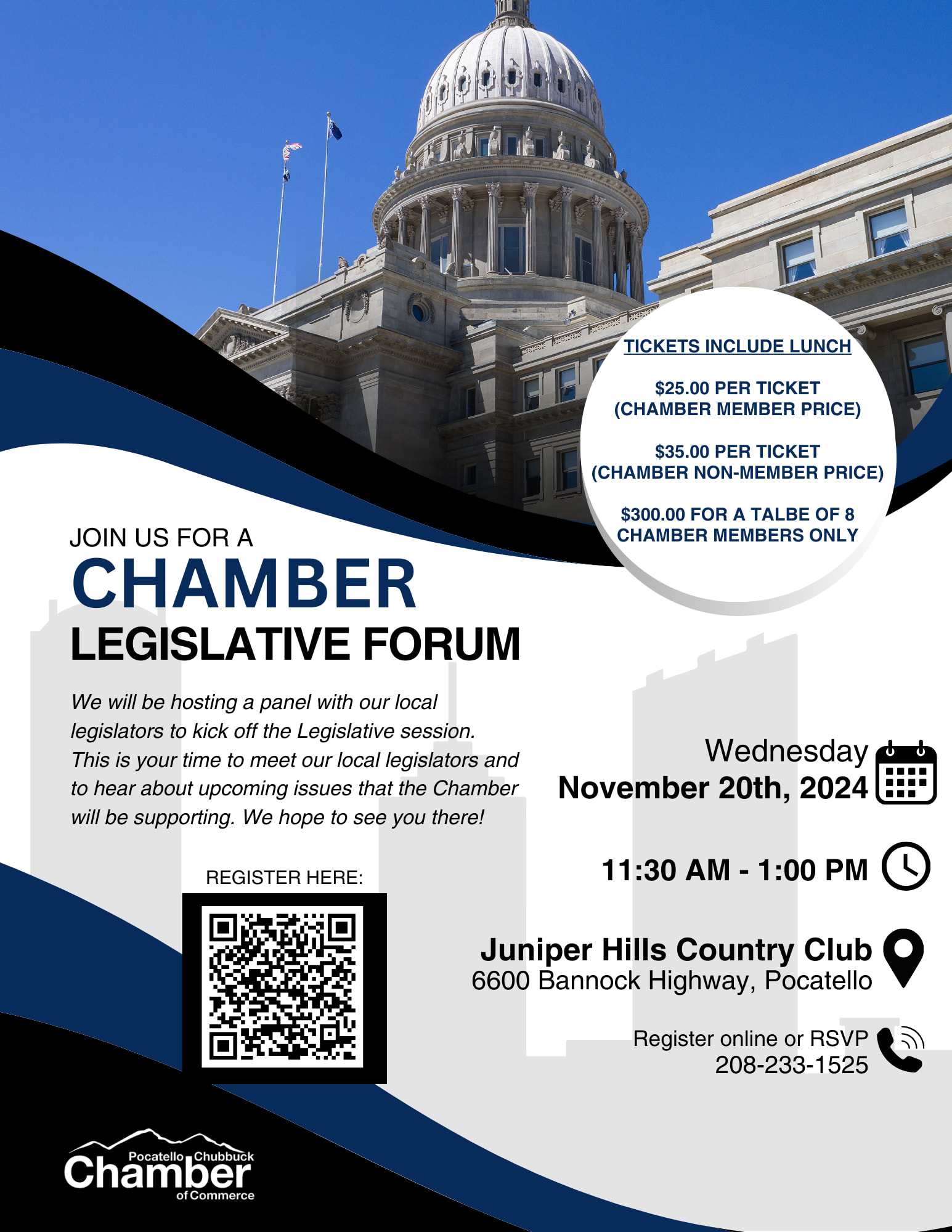 Join us for lunch and a discussion with a panel of our local legislators. All are welcome - $25 for members and $35 for non-members.