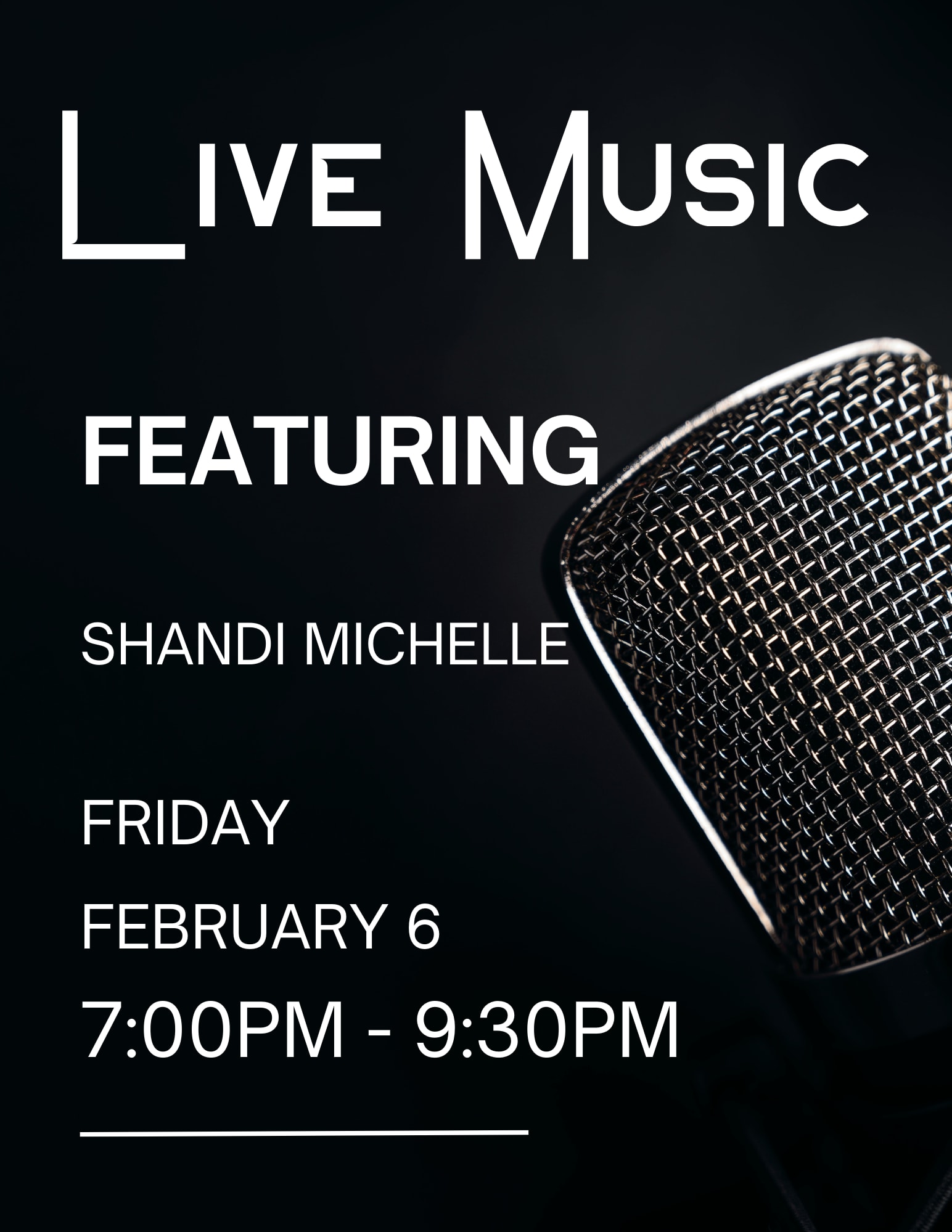 Live music by the beautiful and talented Shandi Michelle at Wanderlust! Come listen and have some fun while enjoying your favorite adult beverages.